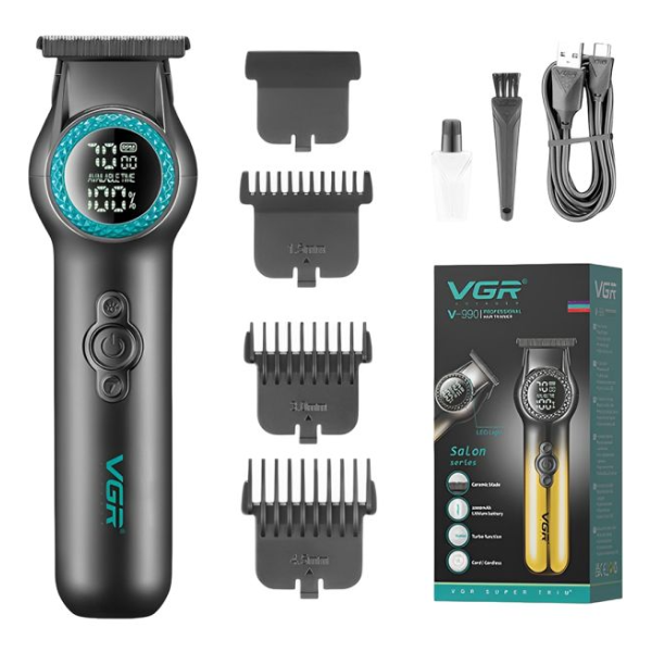Experimente um corte de alto desempenho com o VGR V-990 Black. Robusto, elegante e eficiente, esse cortador de cabelos foi projetado para uso intenso com resultados de barbearia. Possui motor potente, lâminas de precisão e bateria de longa duração, tudo isso em um design preto sofisticado e moderno.