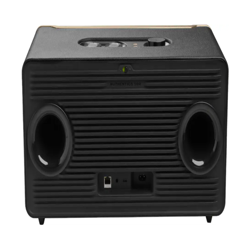 O JBL Authentics 500 é inspirado nos designs clássicos da herança JBL, preenchendo qualquer espaço — grande ou pequeno — com o som superior da JBL.