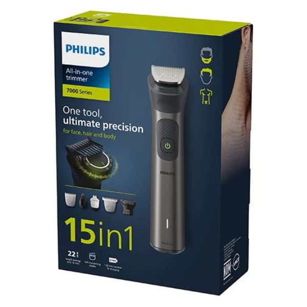 O Barbeador Philips Multigroom MG-7940 15 em 1 é uma solução completa de cuidados pessoais para homens que desejam versatilidade e precisão no corte e modelagem de pelos. Este aparador multifuncional vem com 15 acessórios de alta qualidade, permitindo que você estilize seu rosto, cabelo e corpo com facilidade. O dispositivo é equipado com lâminas autoafiáveis de aço que garantem um corte limpo e eficiente a cada uso. Além disso, sua tecnologia DualCut oferece máxima precisão com o dobro de lâminas. O MG-7940 é à prova d'água, facilitando a limpeza e permitindo o uso durante o banho. Com bateria de longa duração, oferece até 120 minutos de uso sem fio após uma carga completa, e seu design ergonômico proporciona um manuseio confortável e seguro. Ideal para o homem moderno que busca um aparelho completo para manter seu visual sempre em dia.