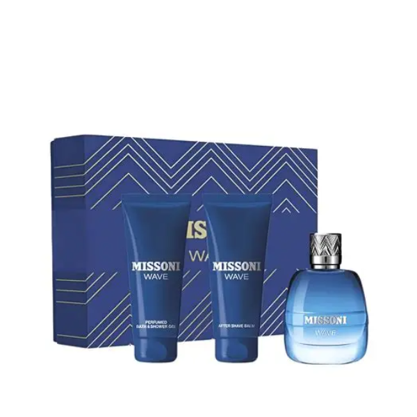 Perfume Missoni Wave EDT Masculino 100ml + Shower Gel + After Shave com frescor aromático e cuidado completo.